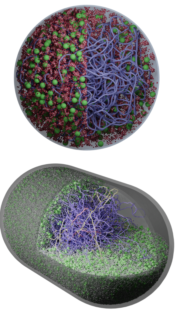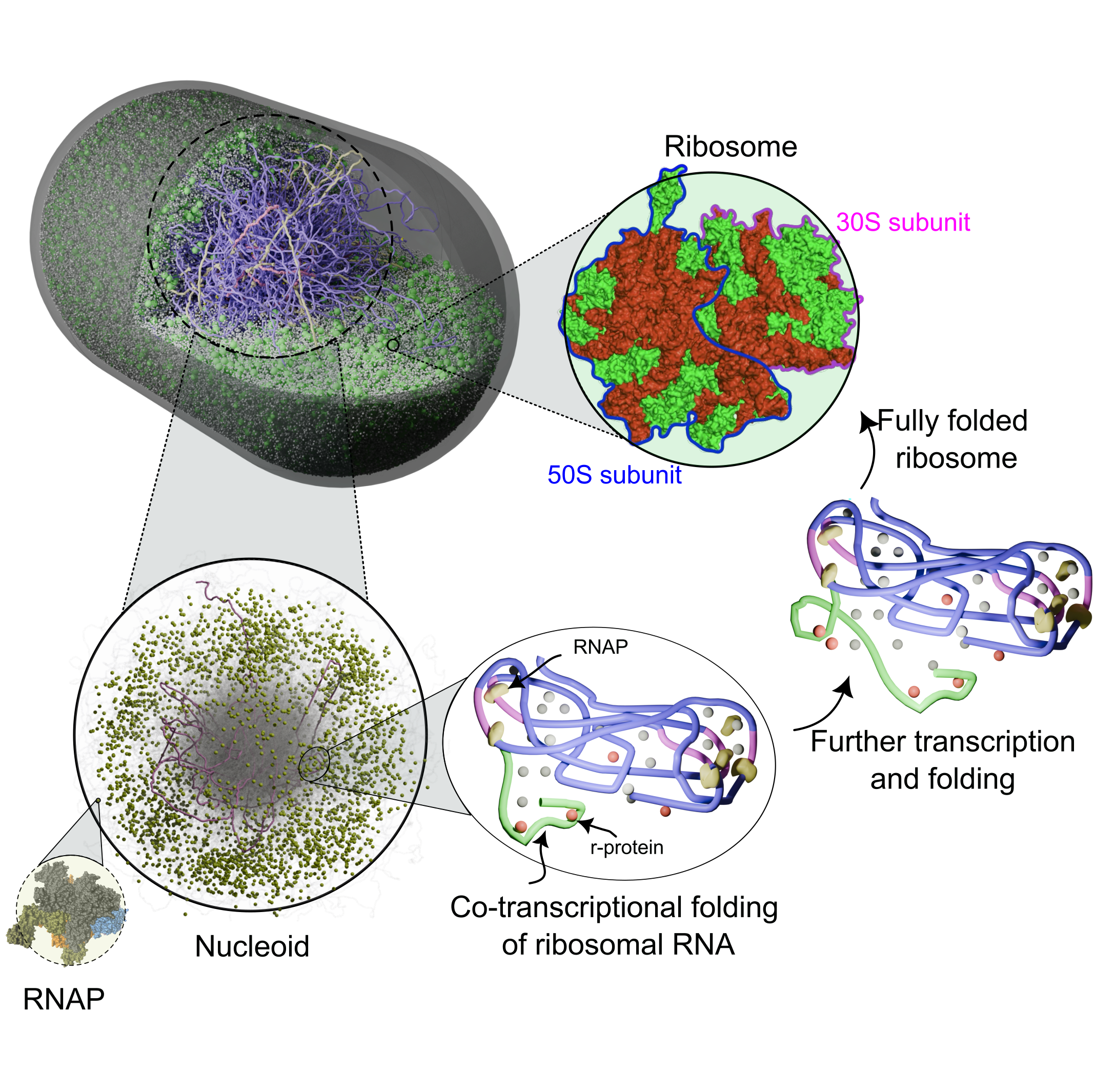 We use these models to uncover how cell-scale physics, spatial architecture, and physicochemical processes control cell function and how matter becomes life, connecting physiotype to phenotype—cytoplasmic organization and nucleoid restructuring to gene expression and adaptation. A central focus is ribosome biogenesis and engineering in natural and synthetic cells.